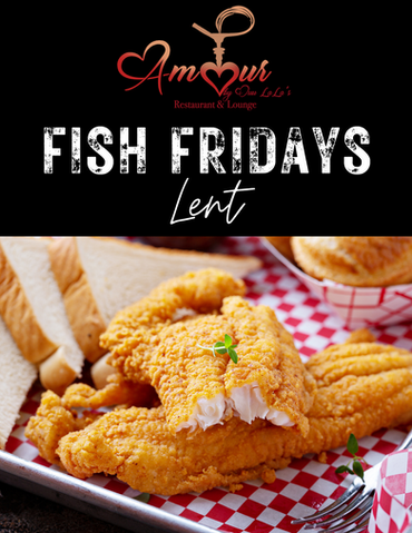 blackened redfish served atop crawfish fried rice, asparagus and a lemon garlic butter sauce